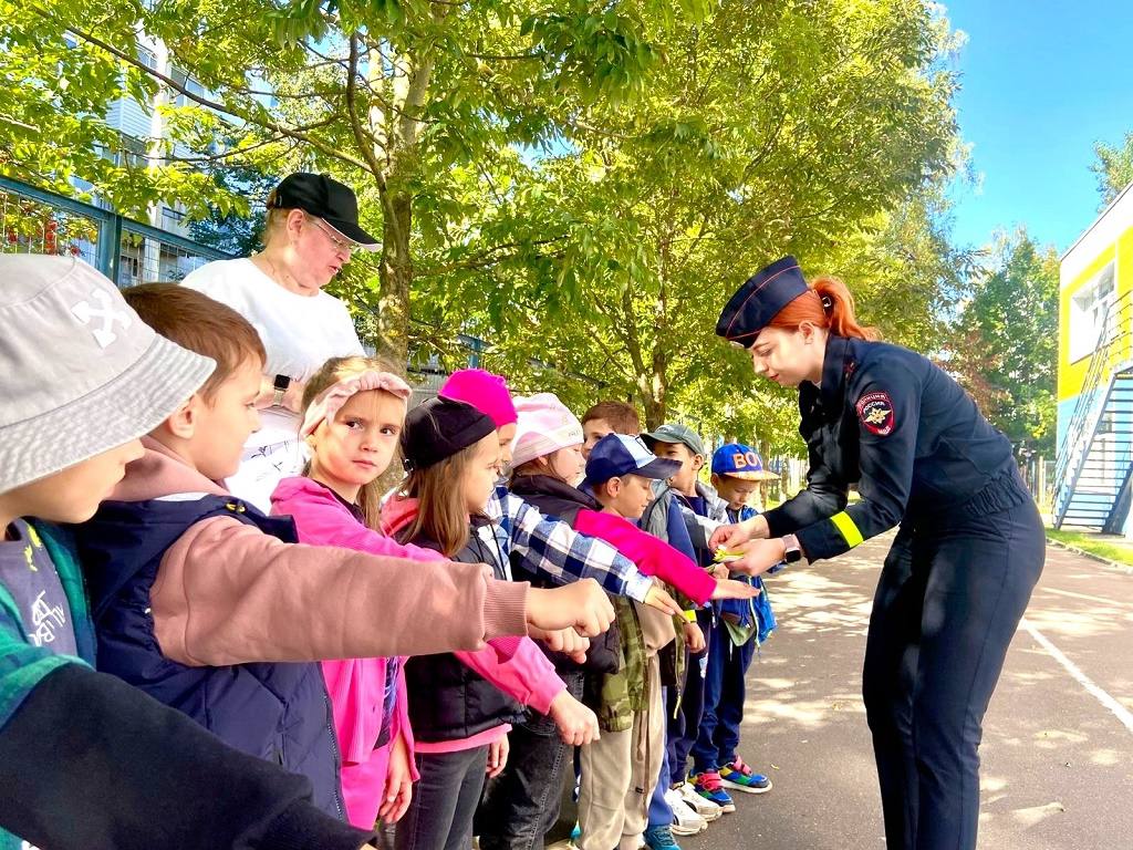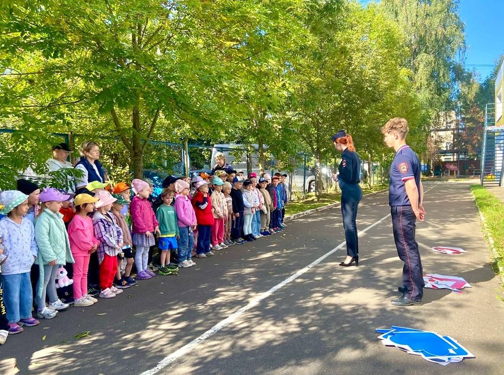 Полицейские повторили с малышами правила перехода проезжей части, разобрали виды и сигналы светофоров и провели викторину «Я знаю ПДД!». Они разъяснили маленьким пешеходам для чего необходимо носить световозвращающие элементы на одежде.