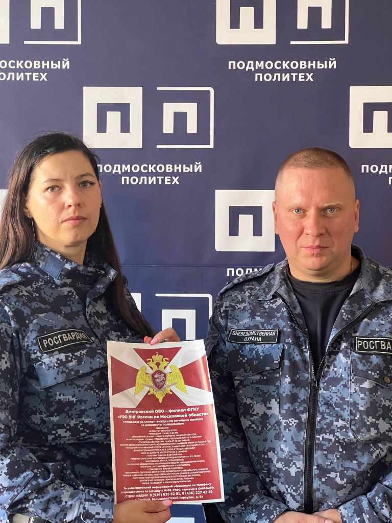 Сотрудники ОВО встретились со студентами Подмосковного политехнического колледжа и рассказали им об особенностях службы.