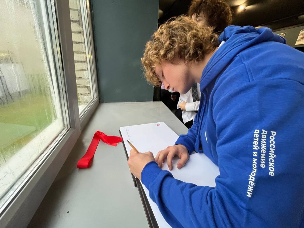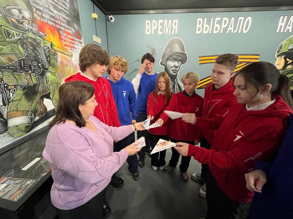 ✍🏻 После осмотра экспозиции наши активисты оставили тёплые слова в книге почётных гостей музея, написали письма для бойцов СВО и получили памятные стикеры музея.