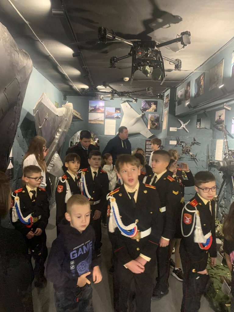 🗣 Ребятам рассказали об истории создания музея и уникальных экспозициях. В зале беспилотников школьники познакомились с новейшими российскими моделями БПЛА и их характеристиками.