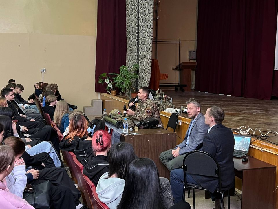 Студенты филиала встретились с ветеранами СВО. В ходе встречи ветераны рассказали об обстановке на передовой и дали возможность студентам попробовать управлять виртуальным беспилотным летательным аппаратом.
