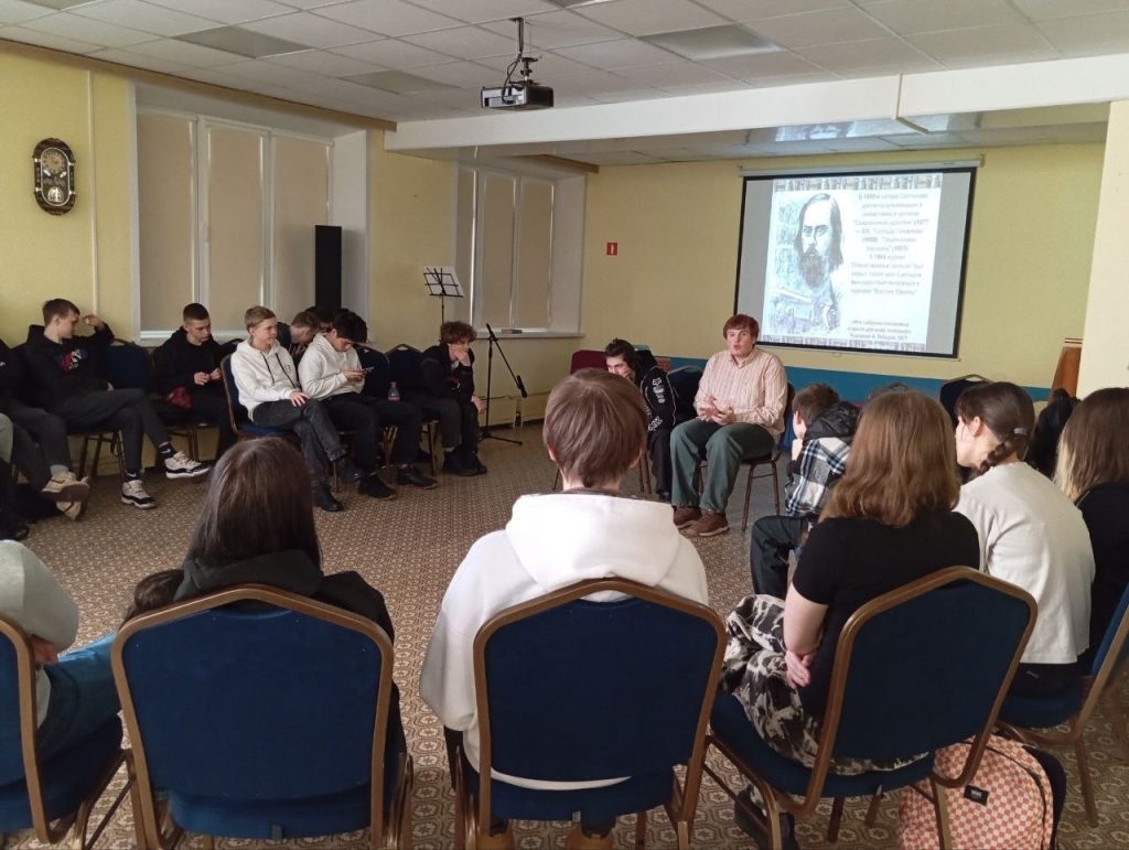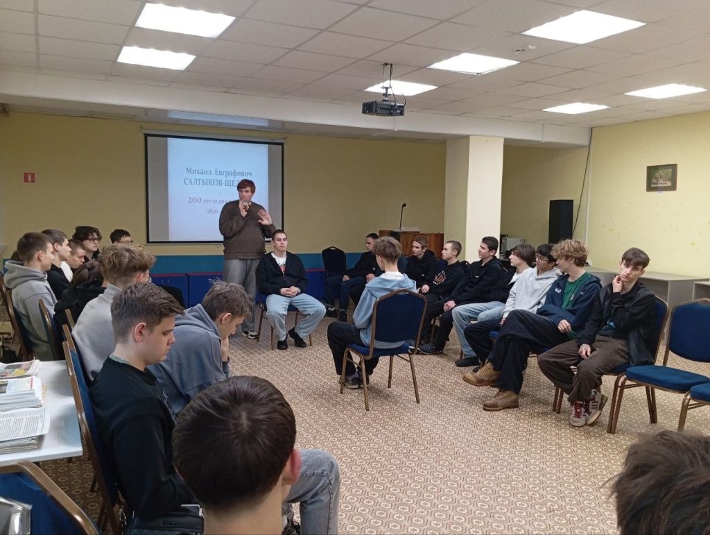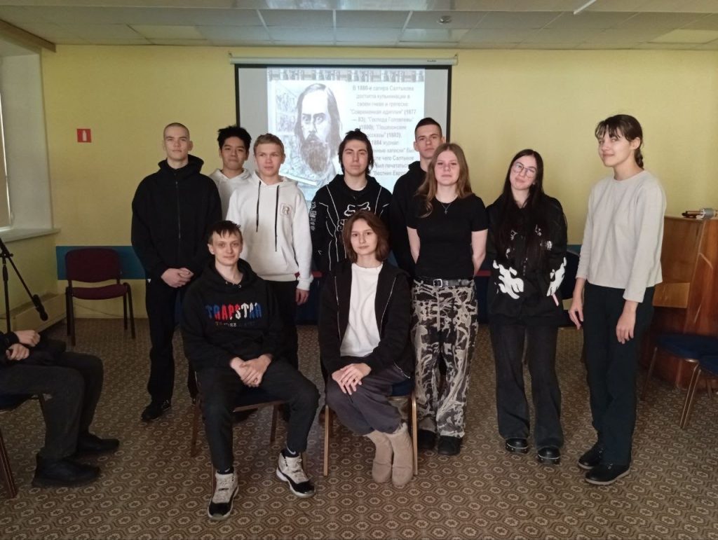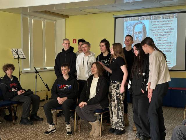 Студенты колледжа погрузились в богатое наследие русской литературы и рассматривали художественное мастерство классика сквозь призму современных культурных реалий. Предметом дискуссии стали произведения писателя «Господа Головлёвы» (их семейные неурядицы) и «История одного города» (феномен города Глупова).