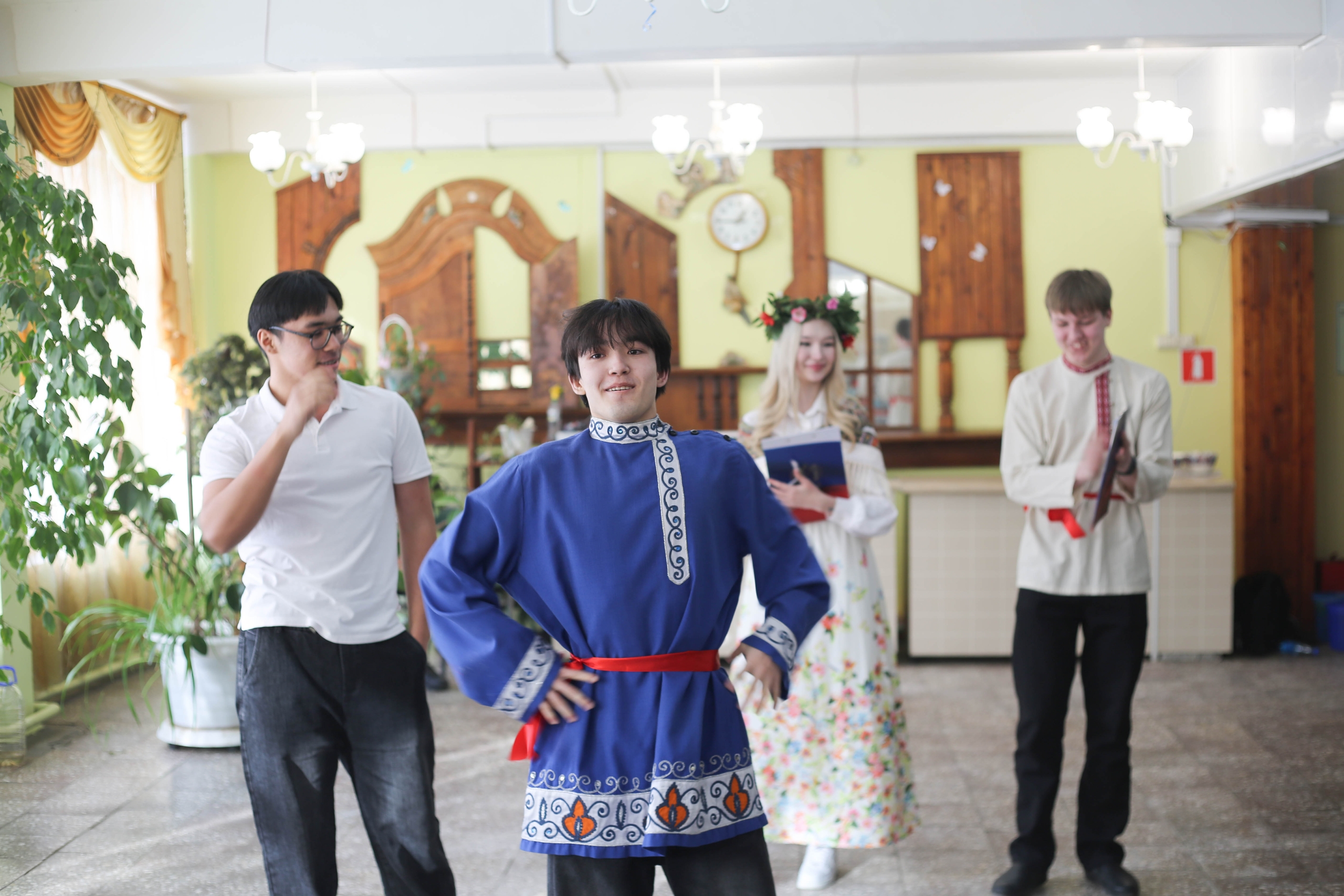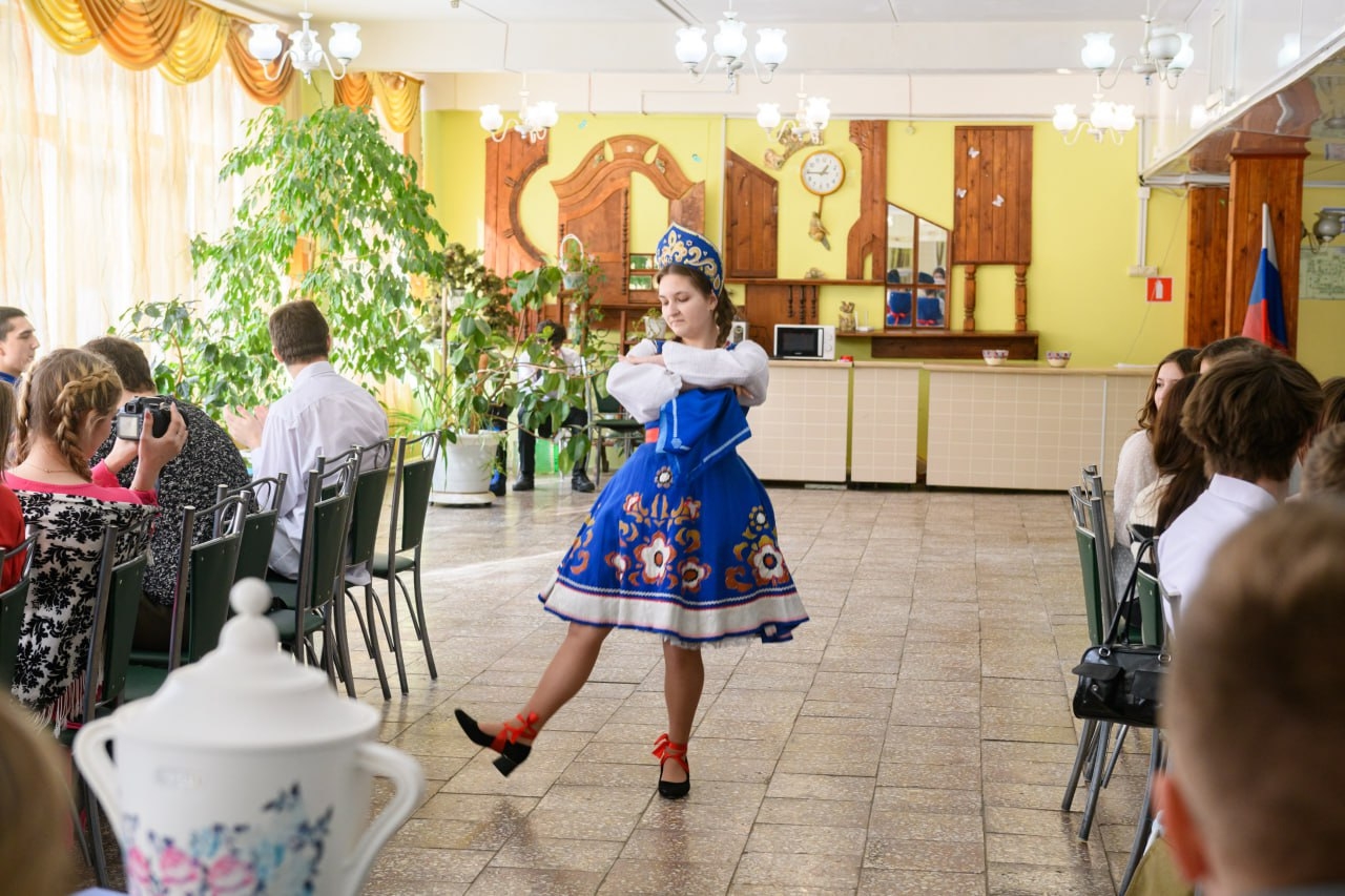 Все вместе играли в ручеёк, пели частушки, танцевали, участвовали в конкурсах и викторинах. Завершилось мероприятие угощением — традиционными русскими блинами под ароматный, горячий чай, шутки и смех.