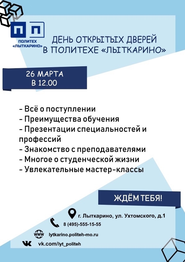 Политех «Лыткарино» приглашает тебя и твоих друзей на День открытых дверей!