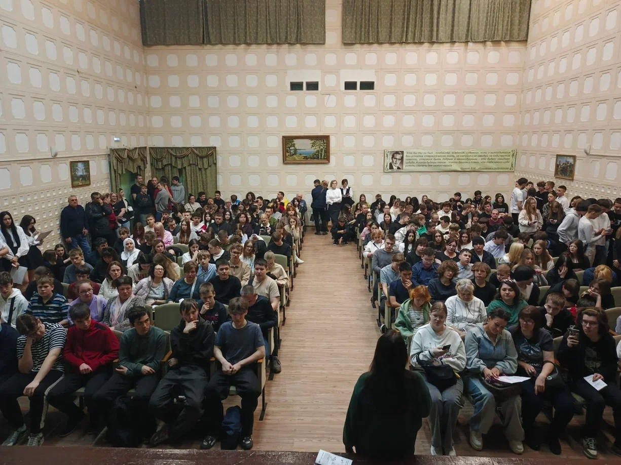 В актовом зале представители администрации и сотрудники Приёмной комиссии рассказали будущим студентам о специальностях, об организации учебного процесса, о возможности получения дополнительного профессионального образования.