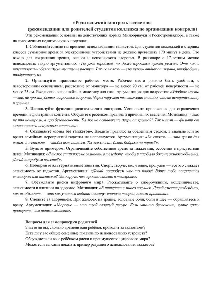 🔹Эффективная организация использования электронных устройств должна основываться не на запретительных мерах родителей, а на принципах ответственности, безопасности и личного примера.