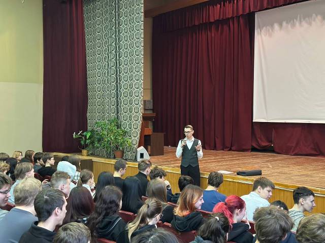 Открытый диалог с молодежью провел Тимур Брюханов. Тимур поделился со студентами своими жизненными принципами, подчеркнув, что долг следует исполнять с честью, даже если это означает путь от университетской аудитории до окопов СВО. Он наш выпускник, окончил, колледж окончил в 2016 году по специальности: «Электромонтер по обслуживанию электрооборудования». Пройдя срочную службу, в 2022 году в июле заключил контракт с Министерством обороны. После очередного ранения, Тимур восстанавливался и опять убывал в воинскую часть. На счету ветерана четыре контракта. Имеет награды: медаль «За безупречную службу в Добровольческом корпусе», медаль «Участника специальной военной операции» Министерства обороны РФ.