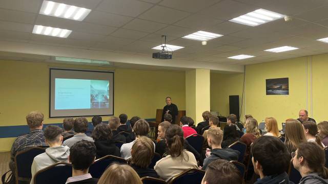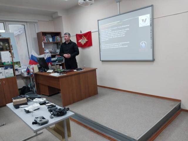 Евгений Становов на занятии затронул одну из актуальных тем «Применение БПЛА в условиях боевых действий». Вопросы темы раскрывал Евгений, опираясь на боевой опыт: виды БПЛА, варианты атаки, корректировка огня, системы сброса боеприпасов. С помощью FPV-очков студенты увидели местность с высоты птичьего полета в реальном времени «глазами» дрона в режиме реального времени, как будто они сами находятся внутри летательного аппарата, что критически важно на поле боя. Особое внимание участник боевых действий уделил вопросам безопасности: что делать, если в небе замечен неизвестный летательный аппарат, как его распознать и куда следует сообщить.