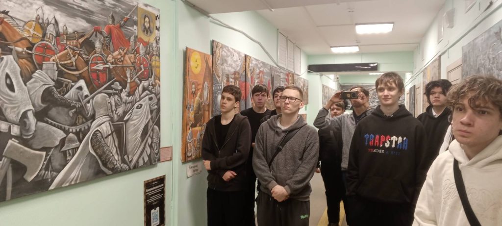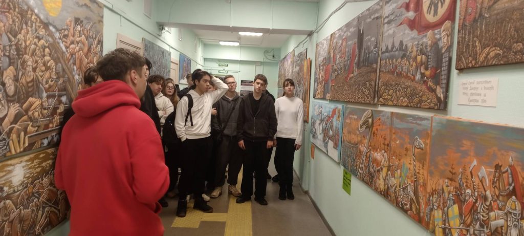 11 декабря 2025 года студенты филиала «Политех «Дубна» в числе первых посетили историко-патриотическую интерактивную выставку картин дубненского художника Бориса Макарова «Поля Русской Славы».